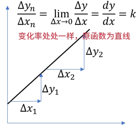 如果 dy 除以 dx 是等于一个恒定的实数的,就意味着这个函数的变化呢,处处都是一样的,它的图像就是一条直线。