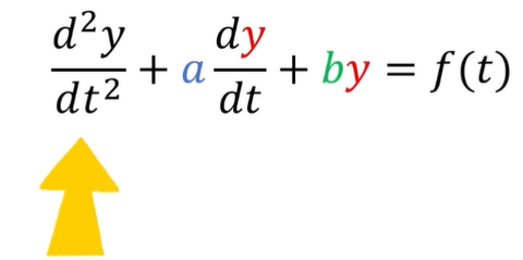 假如我在研究某种波动的现象,注意到啊,它有以下的规律,别问我为什么能注意到,问就是注意力惊人,它的二阶导加上一阶导乘以 A,加上 B 乘以波函数本身,是等于某个规律的,而这个规律呢,可以用 f(t)来进行描述。