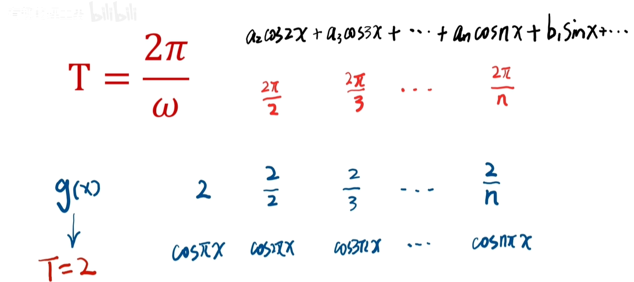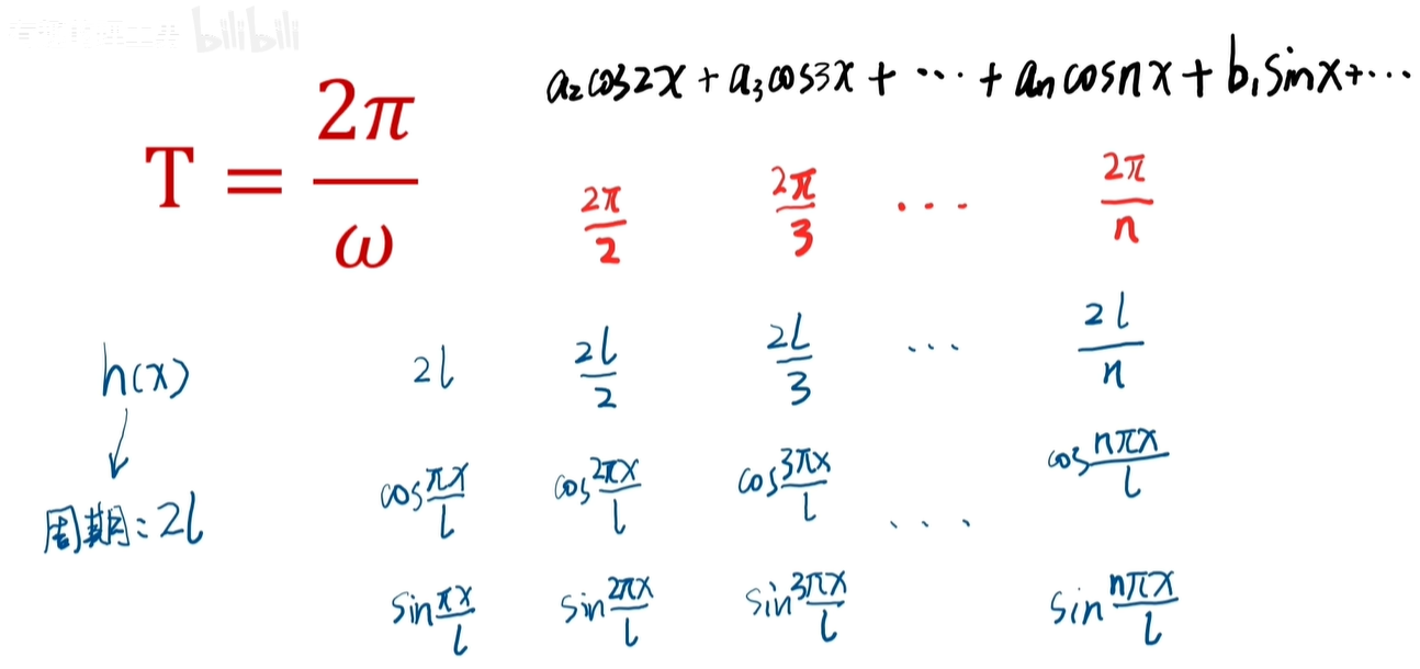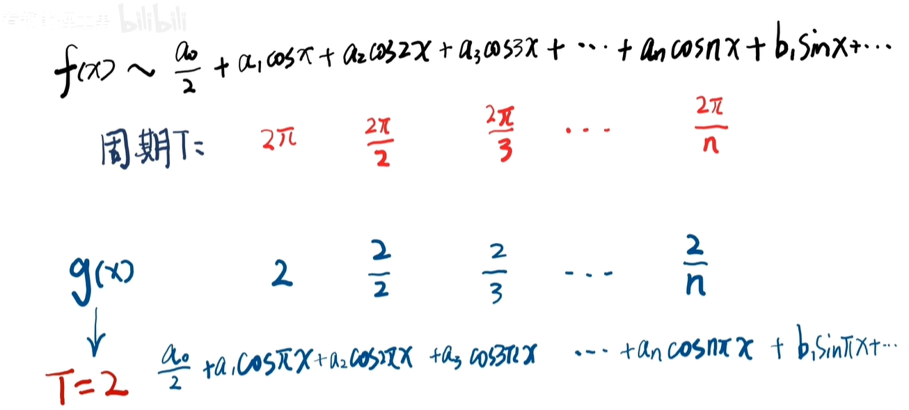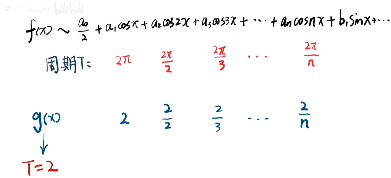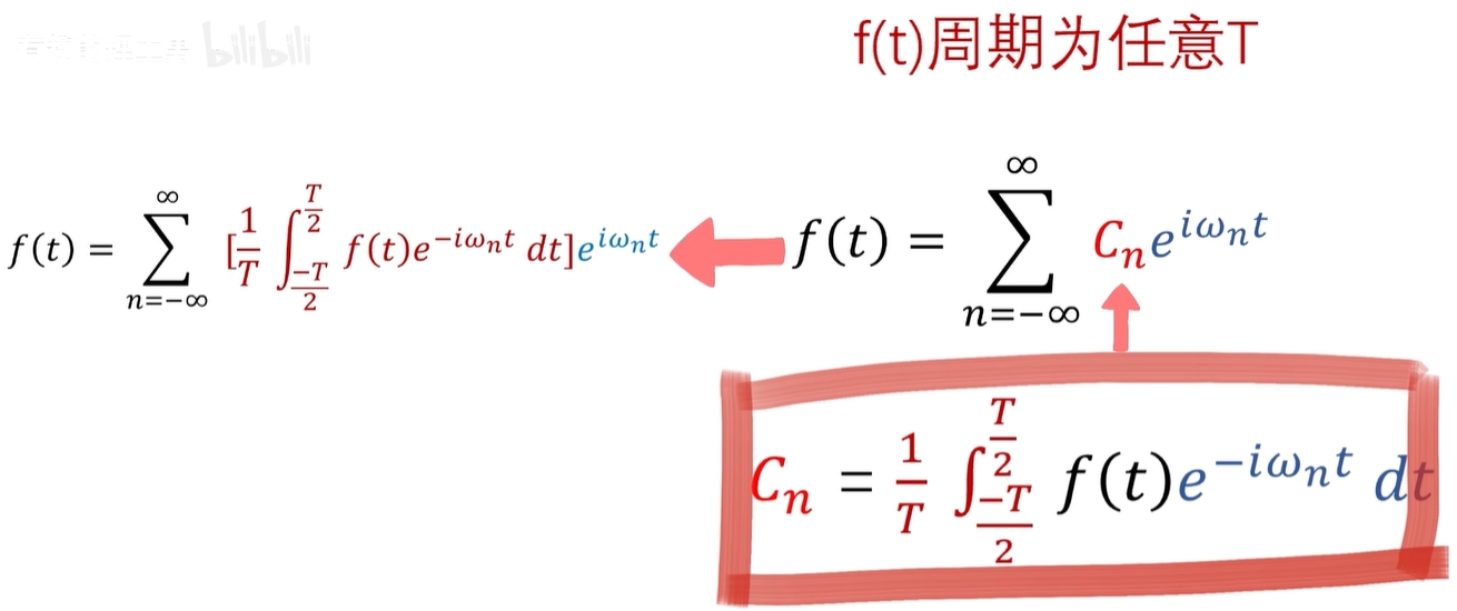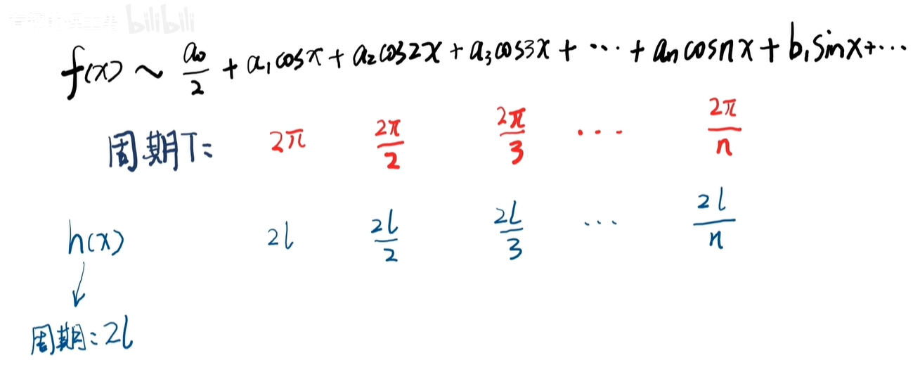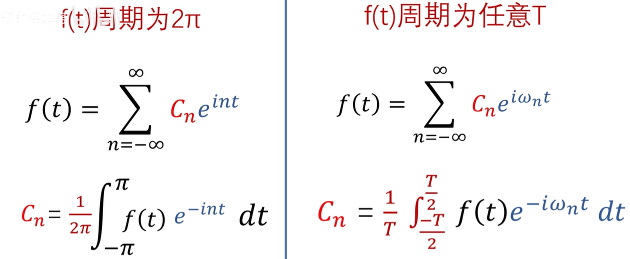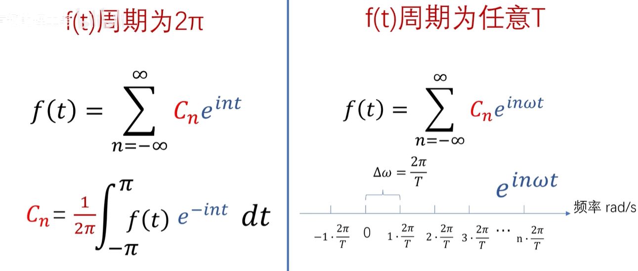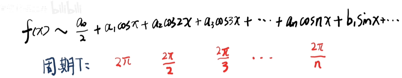 这个公式是针对2π周期函数的,如果原函数周期变为任意周期 T 呢?