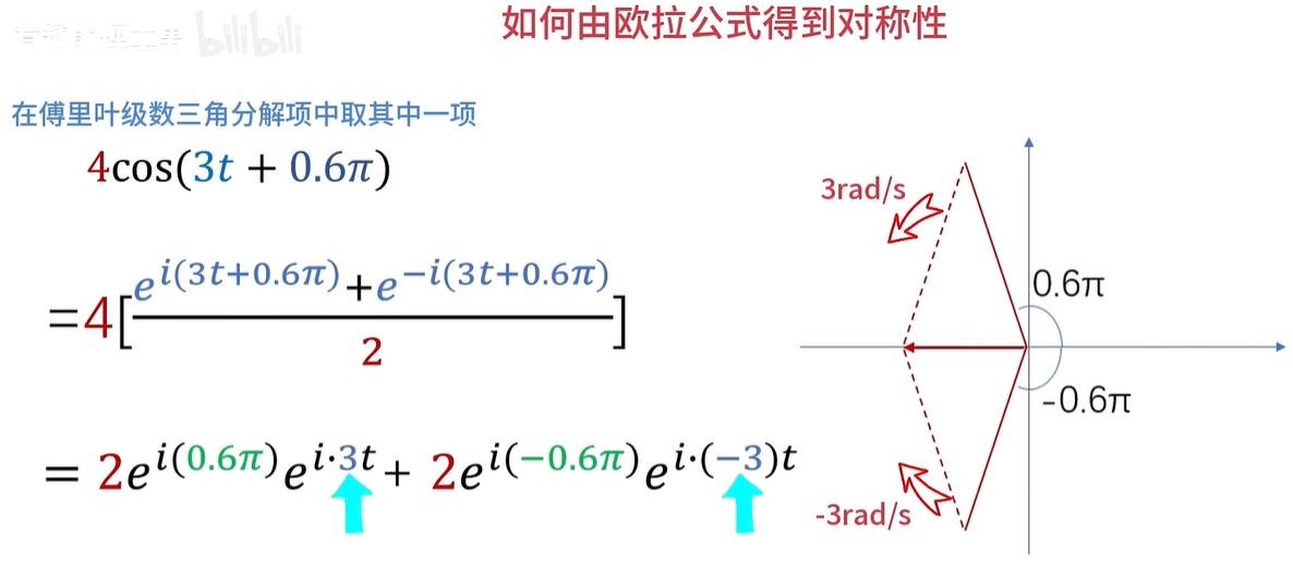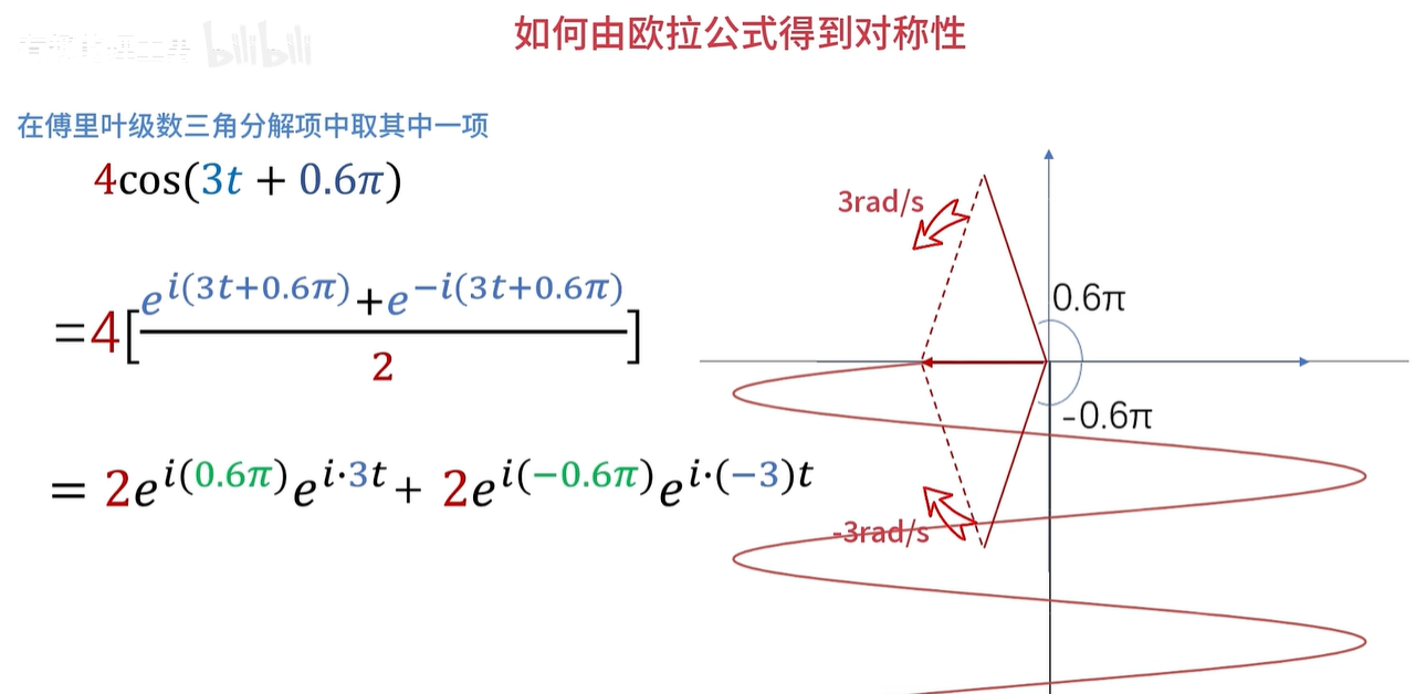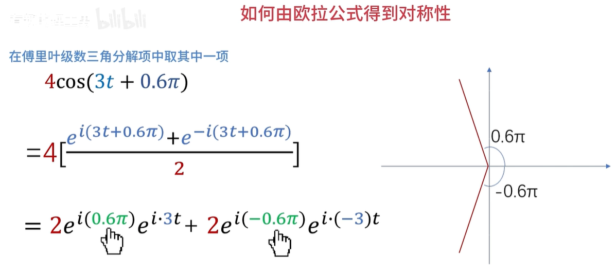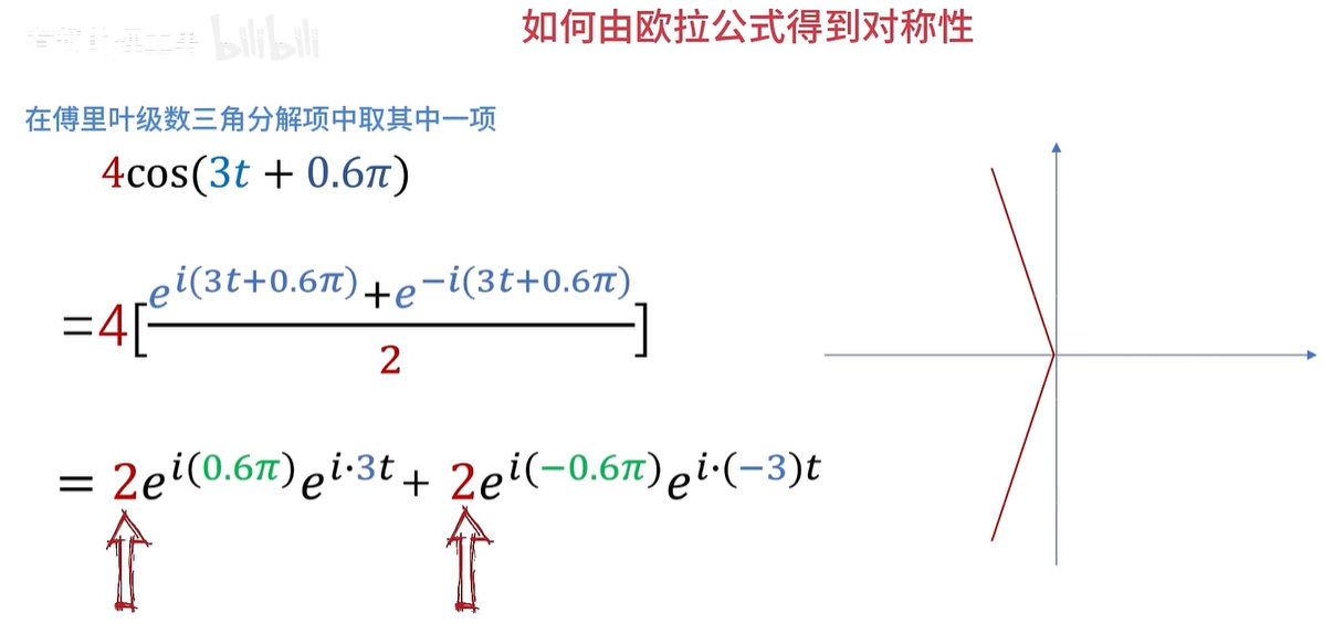 假如求出来的 C 1啊,它是等于3乘e的 i*3分之π次幂,它的模长三可以化为频谱图的纵坐标,幅角π/3就可以化为相位谱的纵坐标。