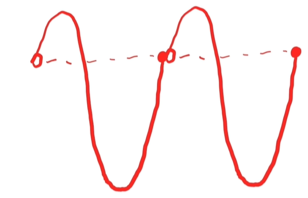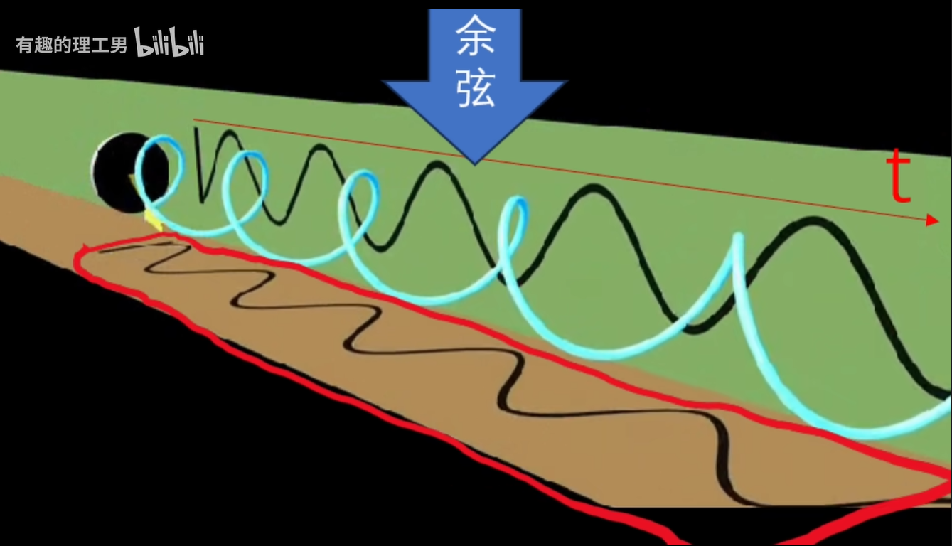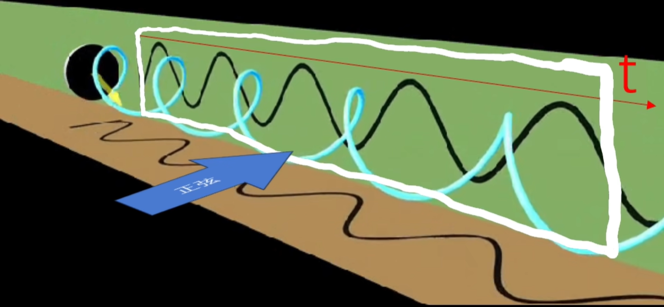 从侧面看,即把时间轴展开了,就看到了一个正弦波形。