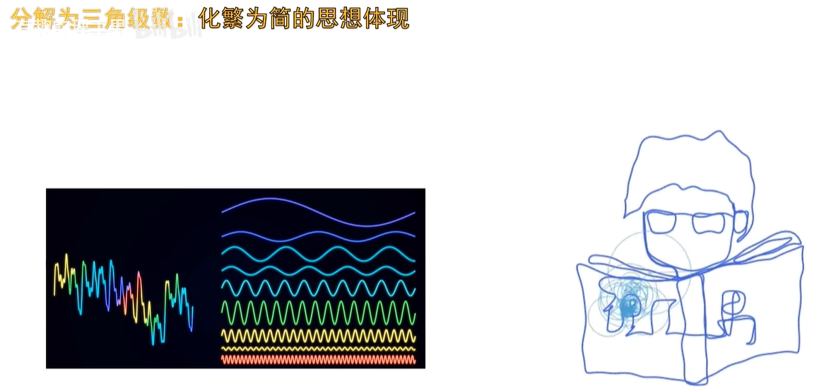如果一个复杂的函数分解成了三角级数,那就意味着一些复杂的运动或者过程,都可以看成无数个这种简谐振动的叠加啊,这不就可以从无序到有序了吗。