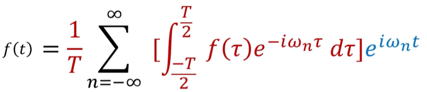 好,至此呢,我们就得到了这样的一个公式,他是正着走进丛林,然后再逆着走回来的地图,它就是傅里叶变换公式的完整版。