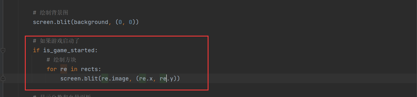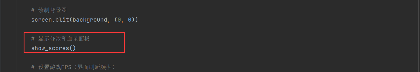 最后在主程序的 while 循环中调用一下该函数,注意要在绘制背景图的下面调用函数,否则会被背景图覆盖