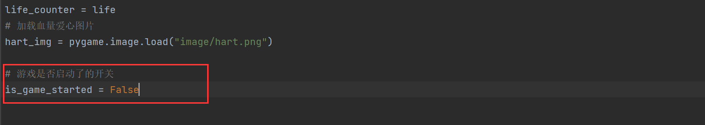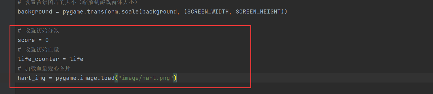 然后在 main.py 中定义分数 score 变量和血量 life_counter 变量,代码如下: