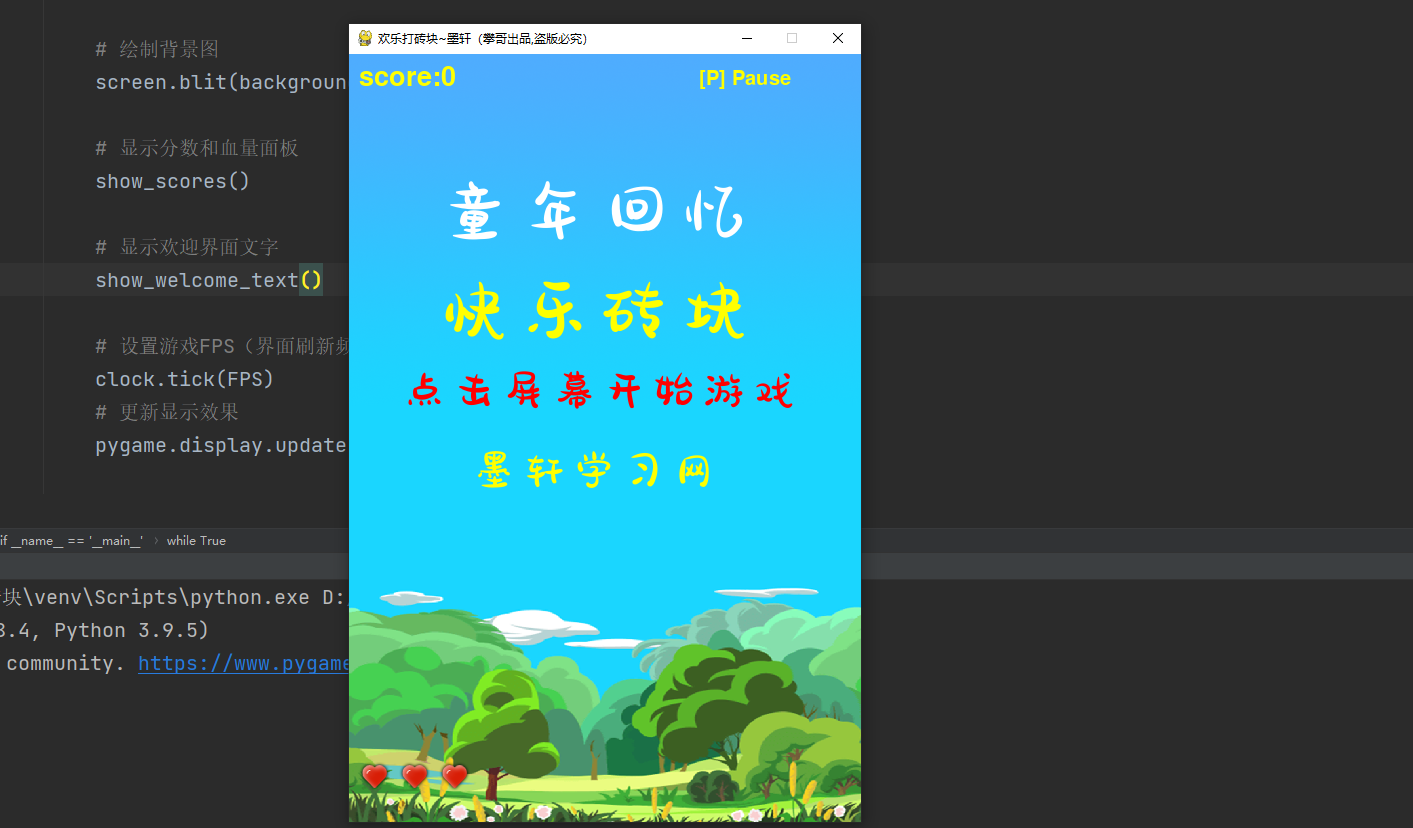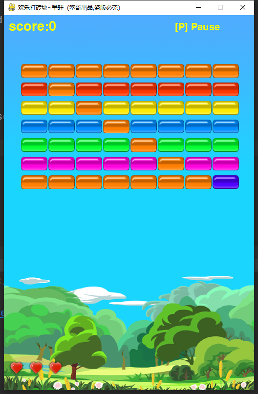 pygame.display.set_caption("欢乐打砖块~墨轩(攀哥出品,盗版必究)")