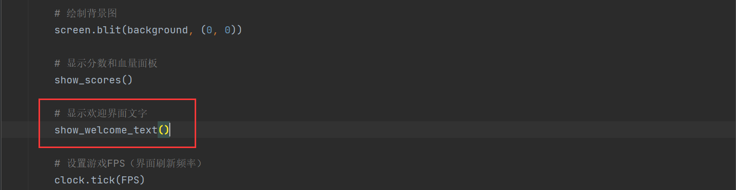 在 main.py 中封装绘制欢迎界面文字内容的函数,代码如下: