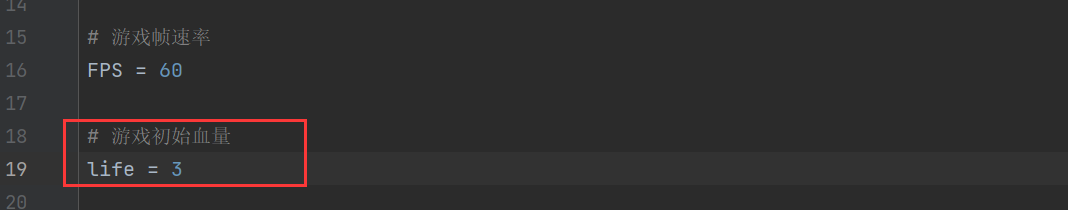 接下来我们来绘制分数和血量,分数初始的时候为 0,而血量为了方便后续调整初始血量,我们首先在常量文件 constant.py 中定义游戏初始血量