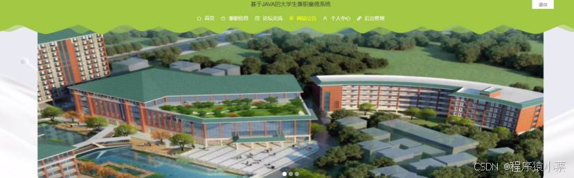 当游客打开系统的网址后,首先看到的就是首页界面。在这里,游客能够看到大学生兼职雇佣系统的导航条显示首页、兼职信息、论坛交流、网站公告、个人中心、后台管理等。系统首页界面如图5-1所示:
