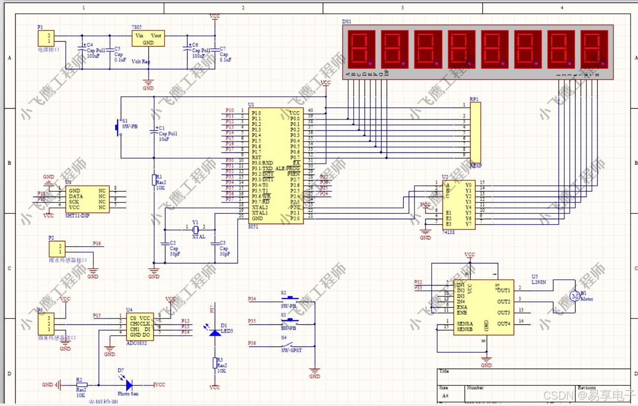 全套资料包含:Proteus仿真源文件+keil C语言源程序+AD原理图+流程图+元器件清单+说明书等