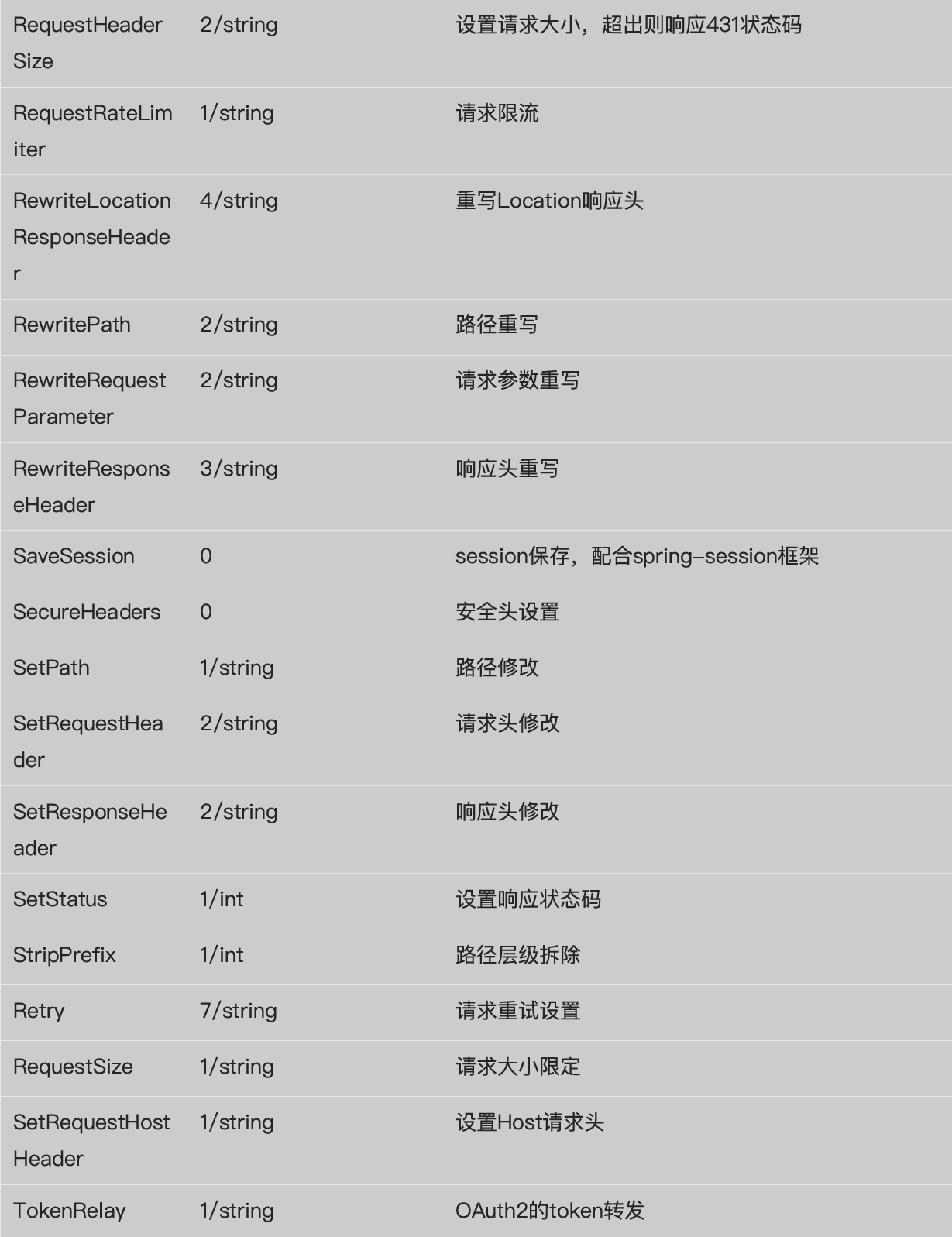 和断言规则一样,gateway的过滤器也用[name + 参数] 那一套