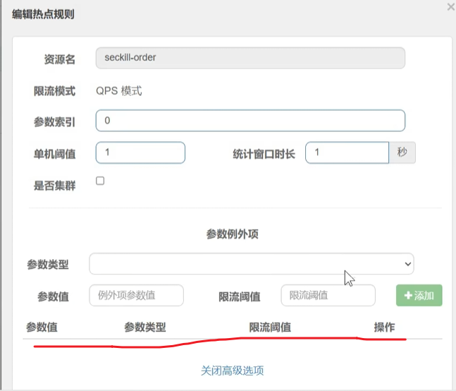 在添加了热点规则后可以编辑其高级项,添加例外参数列表