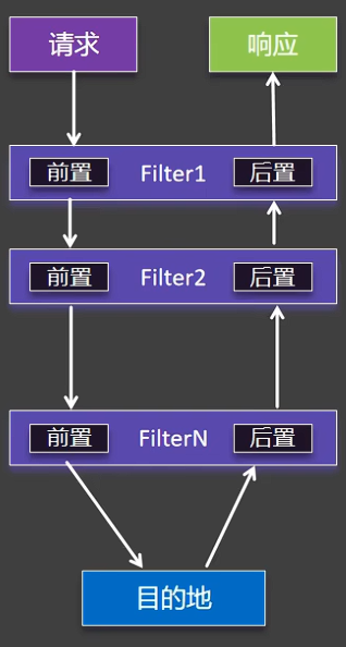跟javaWeb的过滤器类似:重写方法、前后置处理、注入容器