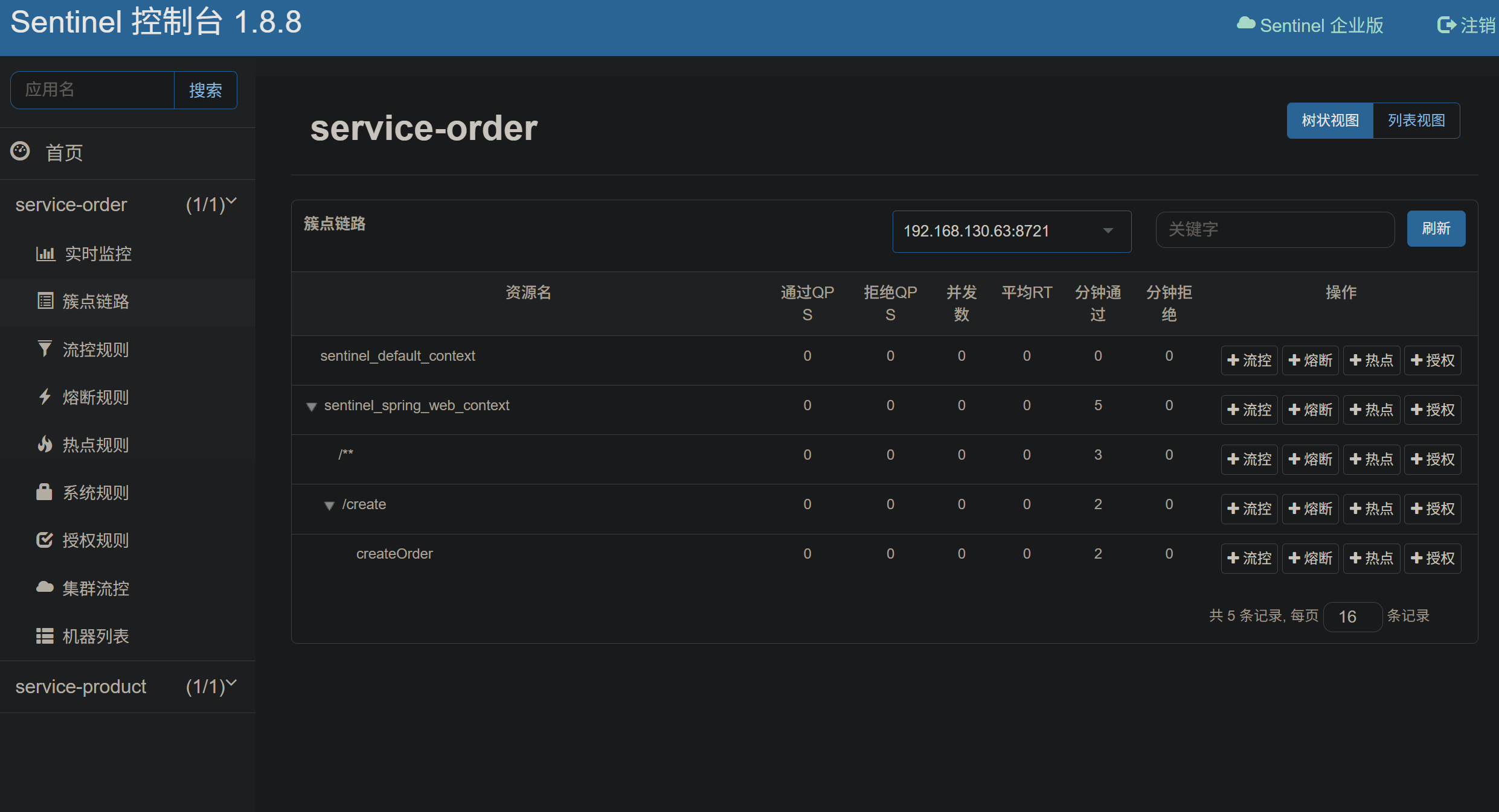 - 异常比例:结果为错误的请求在统计时长内所有请求中所占比例,超过该比例则断路器开启