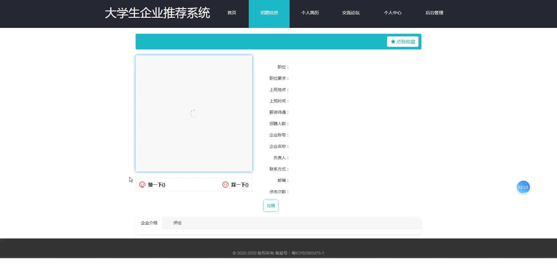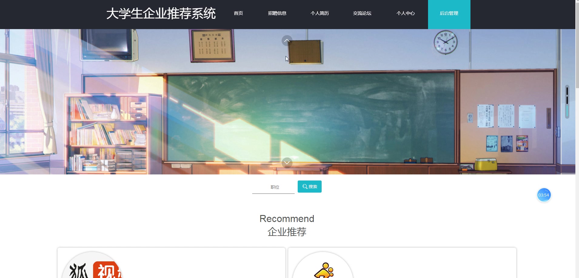 关键词:大学生企业推荐系统;java技术;mysql数据库;b/s结构;ssm框架