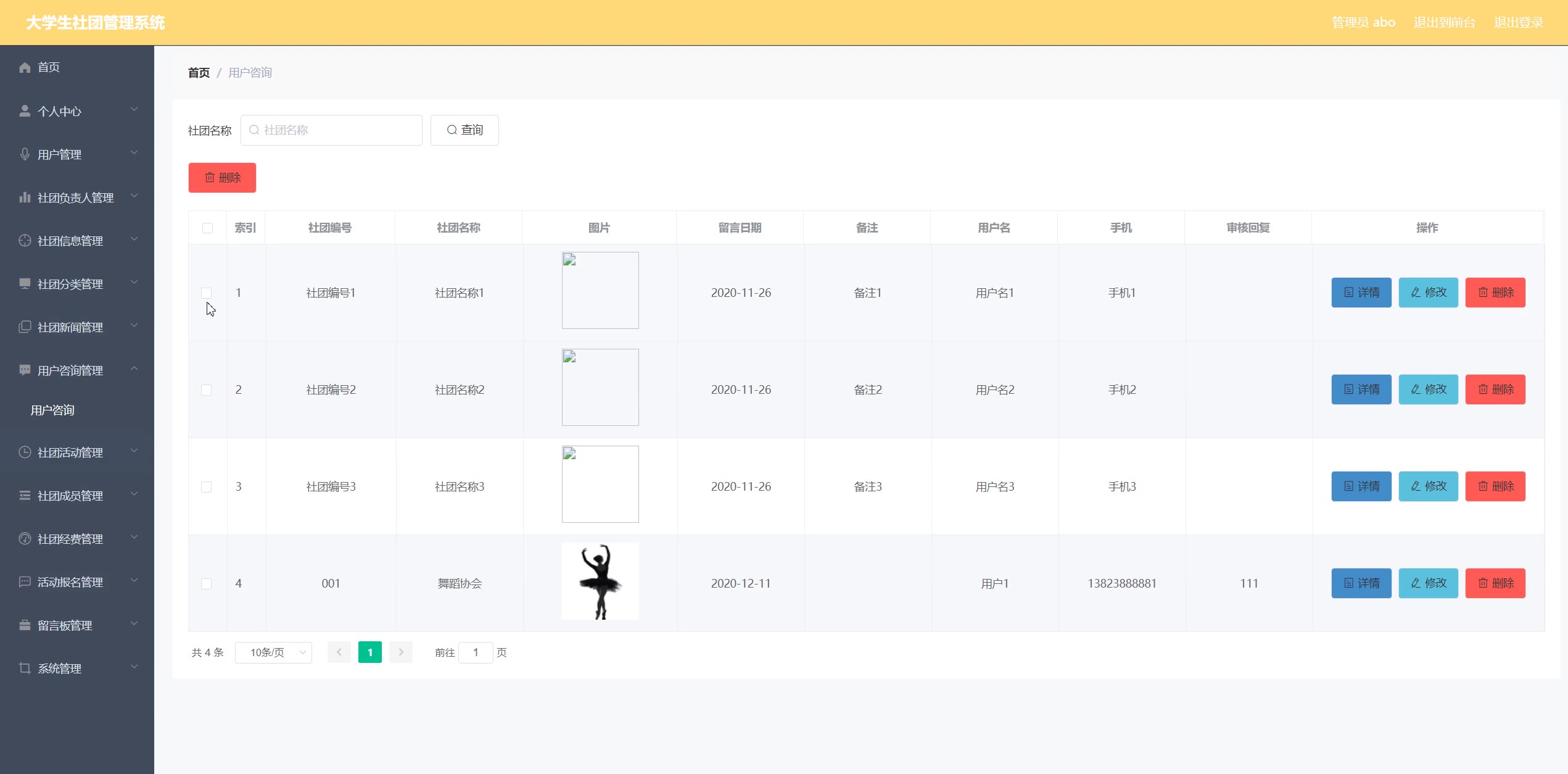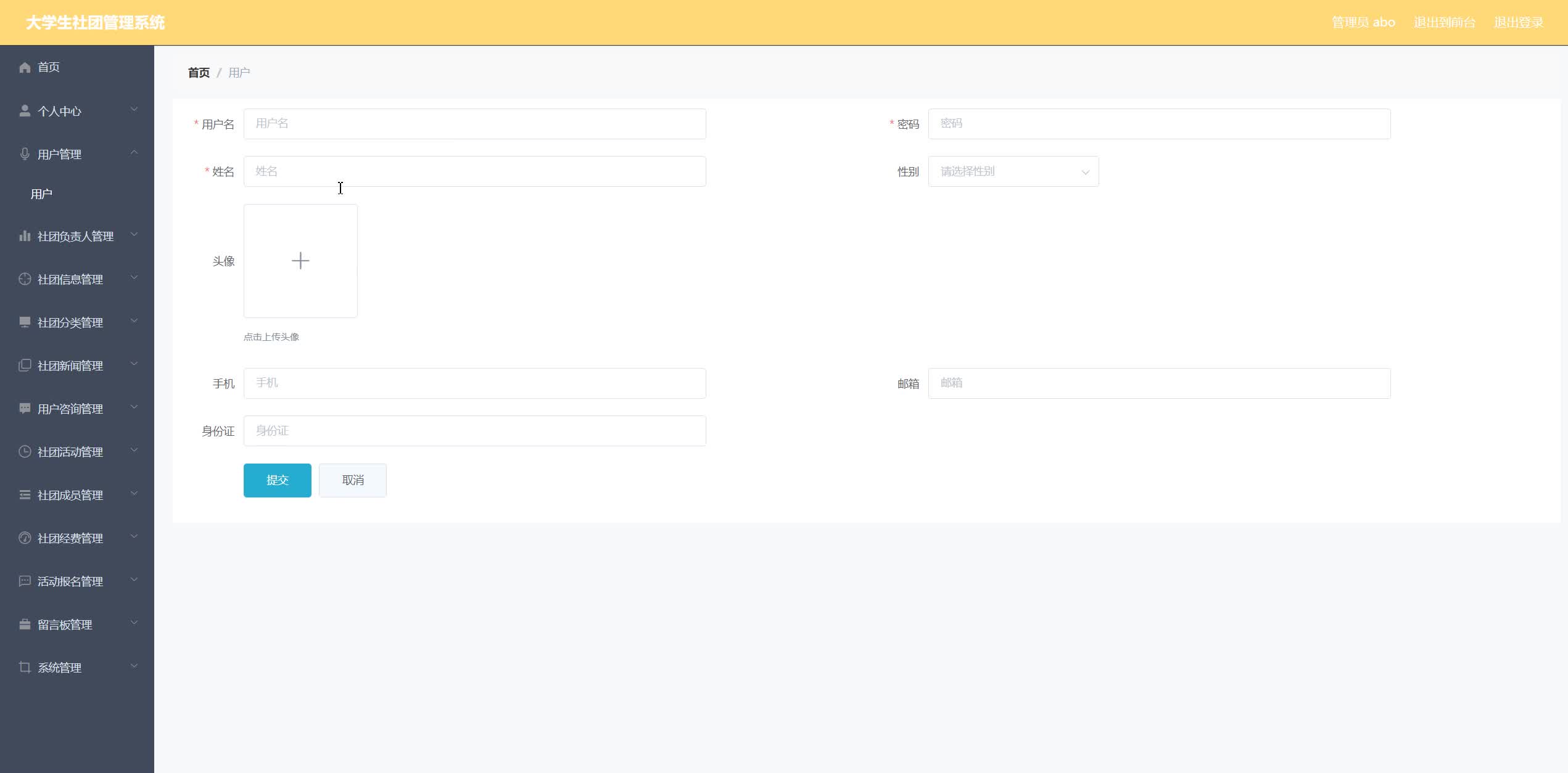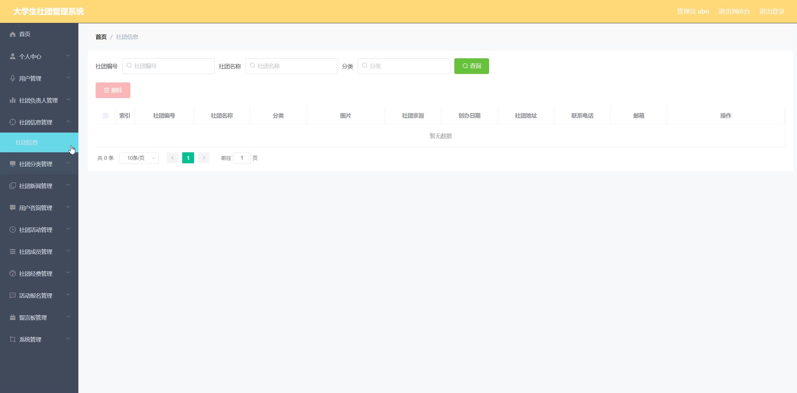 关键词:社团管理;java语言 Mysql数据库; ssm框架