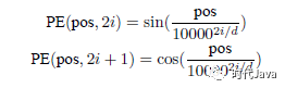 对于输入文本序列,首先通过输入嵌入层(Input Embedding)将每个单词转换为其相对应的向量表示。通常直接对每个单词创建一个向量表示。由于Transfomer 模型不再使用基于循环的方式建模文本输入,序列中不再有任何信息能够提示模型单词之间的相对位置关系。在送入编码器端建模其上下文语义之前,一个非常重要的操作是在词嵌入中加入位置编码(Positional Encoding)这一特征。具体来说,序列中每一个单词所在的位置都对应一个向量。这一向量会与单词表示对应相加并送入到后续模块中做进一步处理。在训练的过程当中,模型会自动地学习到如何利用这部分位置信息。为了得到不同位置对应的编码,Transformer 模型使用不同频率的正余弦函数如下所示: