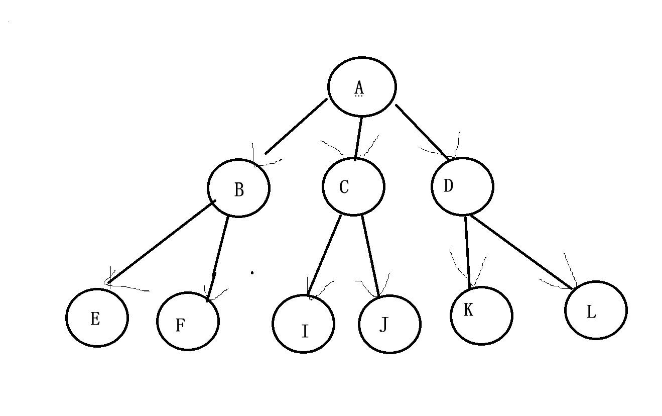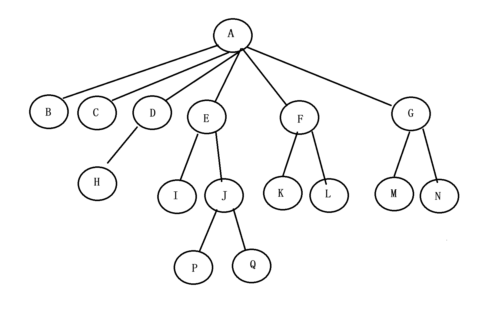 路径:⼀条从树中任意节点出发,沿⽗节点-⼦节点连接,达到任意节点的序列;⽐如A到Q的路径为: A-E-J-Q;H到Q的路径H-D-A-E-J-Q