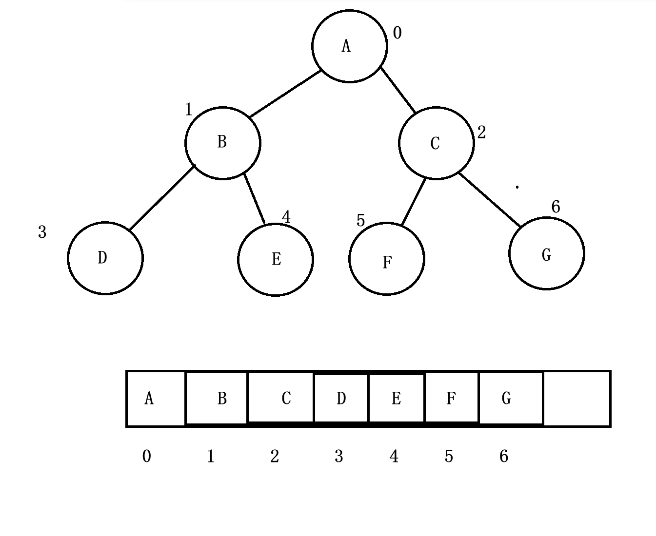 顺序结构存储就是使⽤数组来存储,⼀般使⽤数组只适合表⽰完全⼆叉树,因为不是完全⼆叉树会有空间的浪费,完全⼆叉树更适合使⽤顺序结构存储。