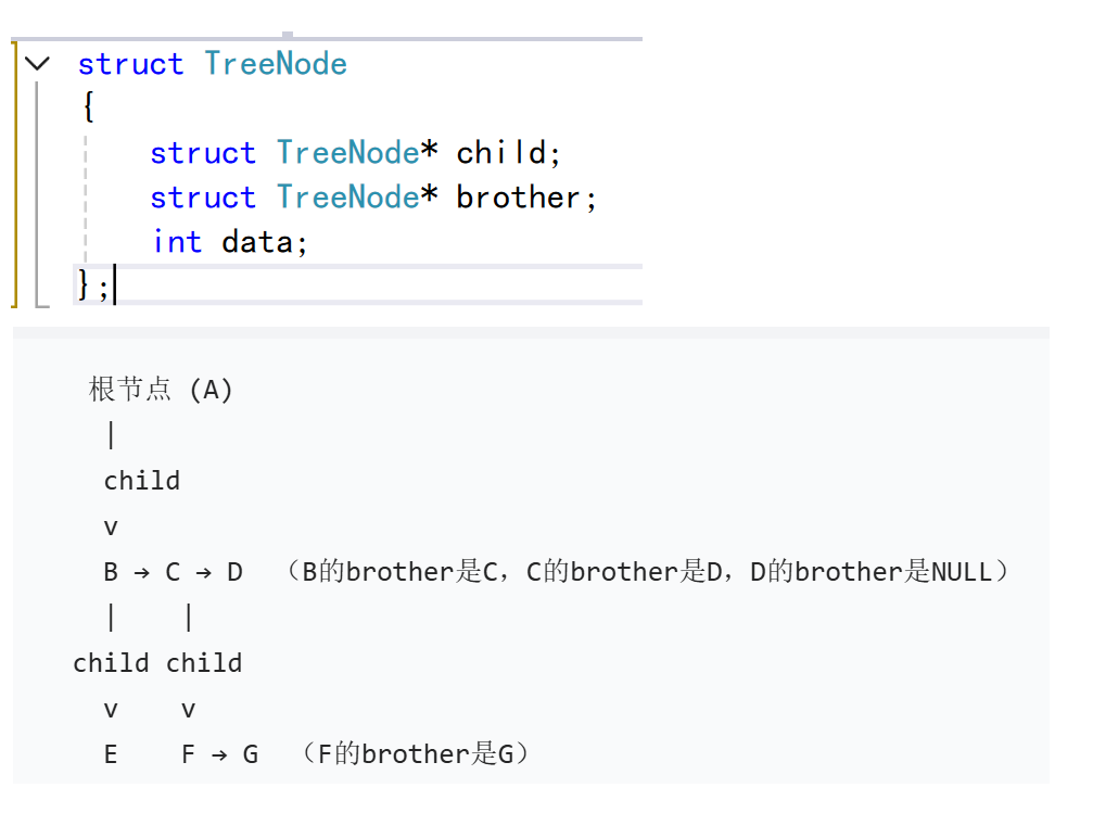 如果不用这样表示,那么我们不知道应该创建几个节点对于每个父节点来说。虽然可以创建一个指针数组来存放,但是这样太浪费内存了。