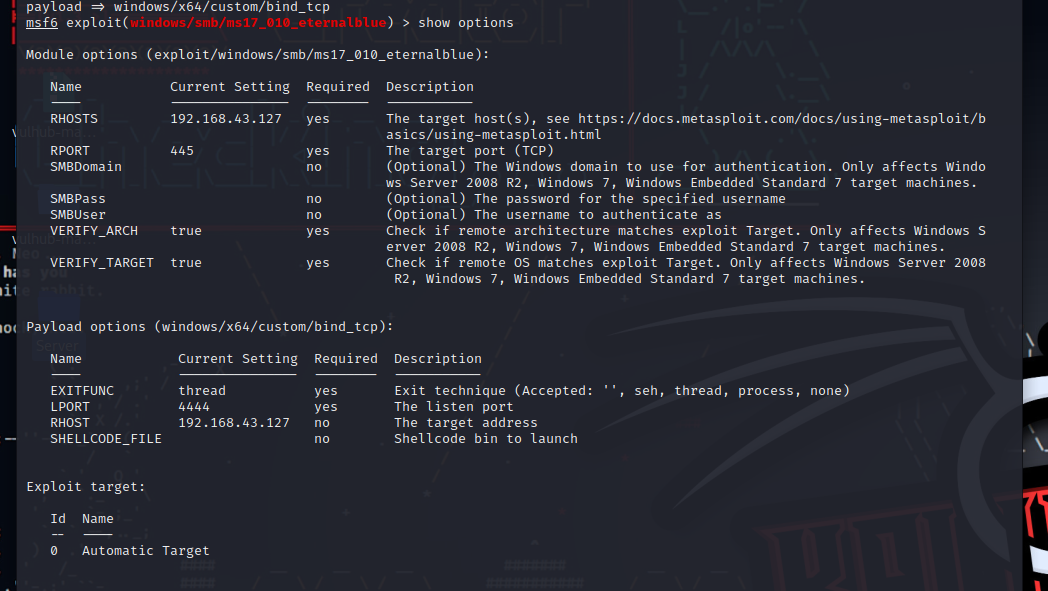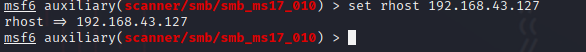 由上图可见我们还要设置rhost(win7地址),所以我们输入set rhost 192.168.43.127
