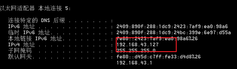 这里注意了,我们看的都是IPV4地址,并且这个地址是因机而异的所以大家务必一步一步操作不能偷懒(针对新手)。