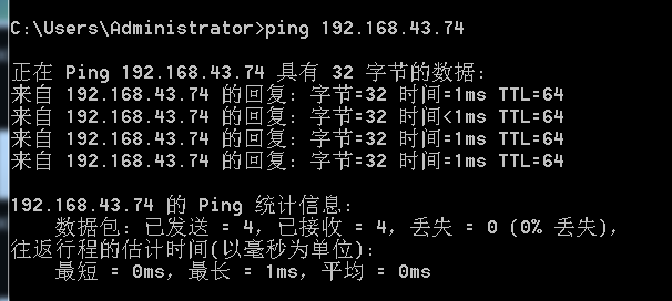 这里的192.168.43.74是Kali地址,字节是发送包的大小,时间是往返时间,表示网络延迟,TTL是存活时间(跳数限制,可以用来大概判断对方是 Windows 还是 Linux)。