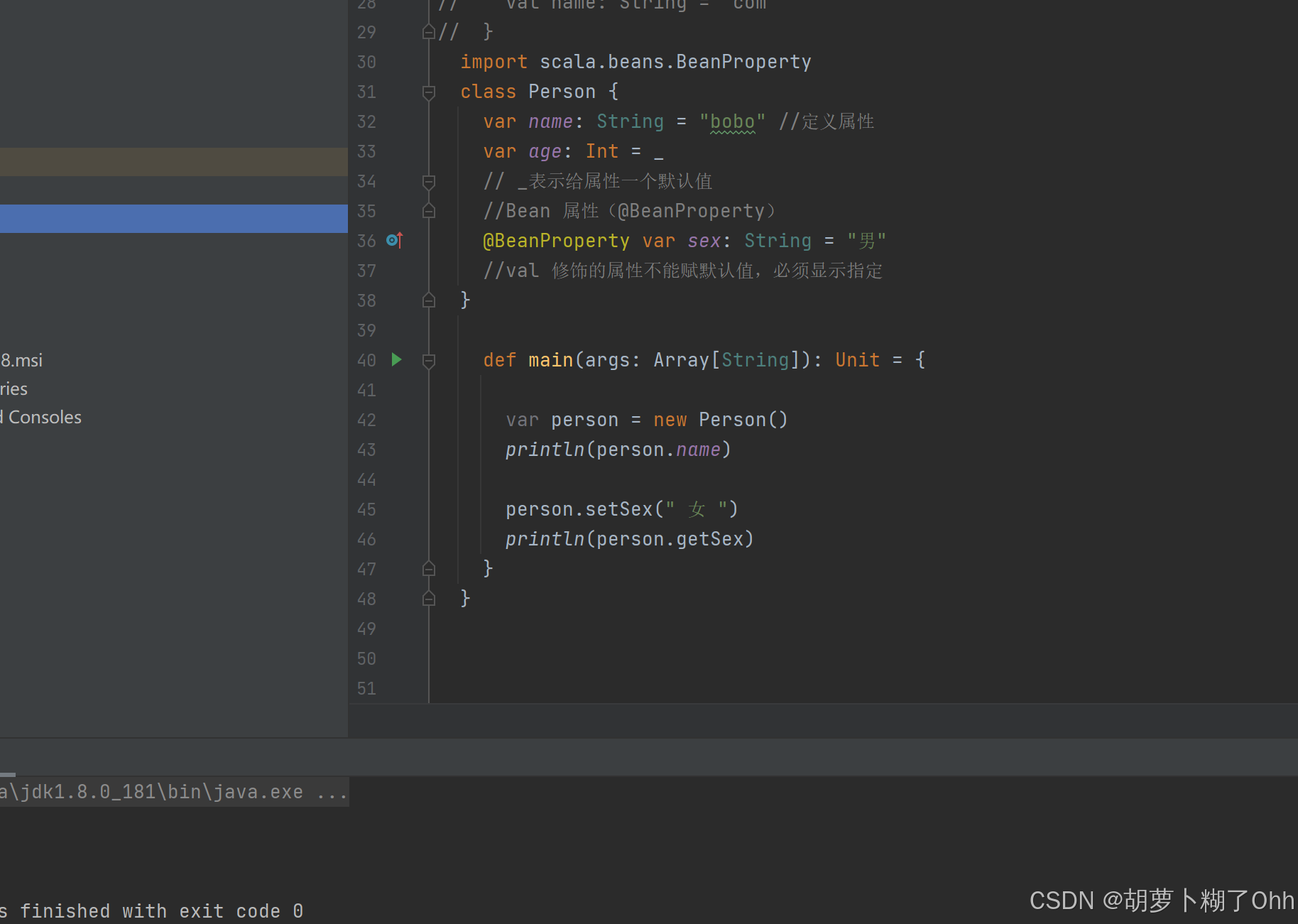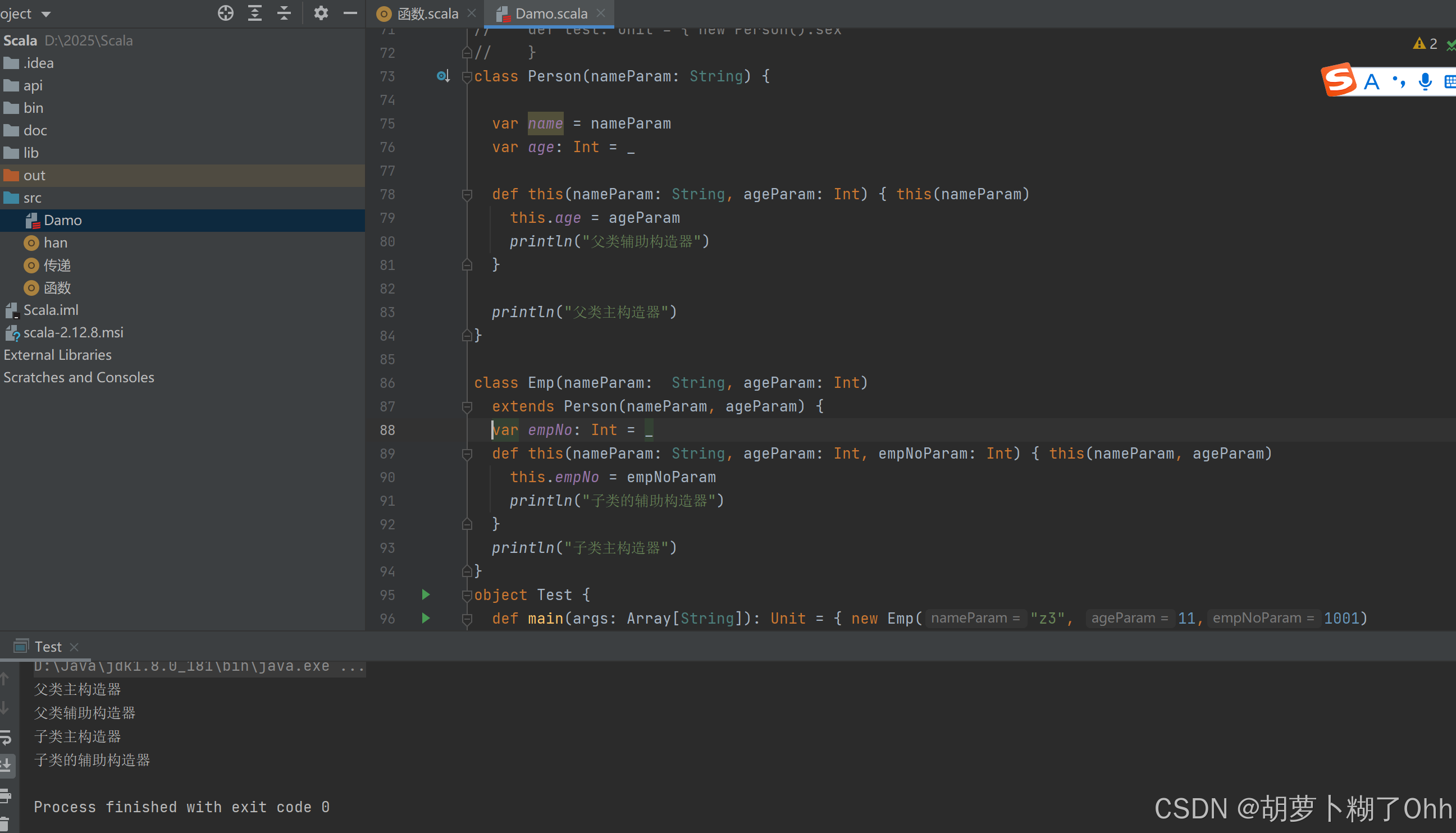 注意:Scala 中没有 public,一个.scala 中可以写多个类。