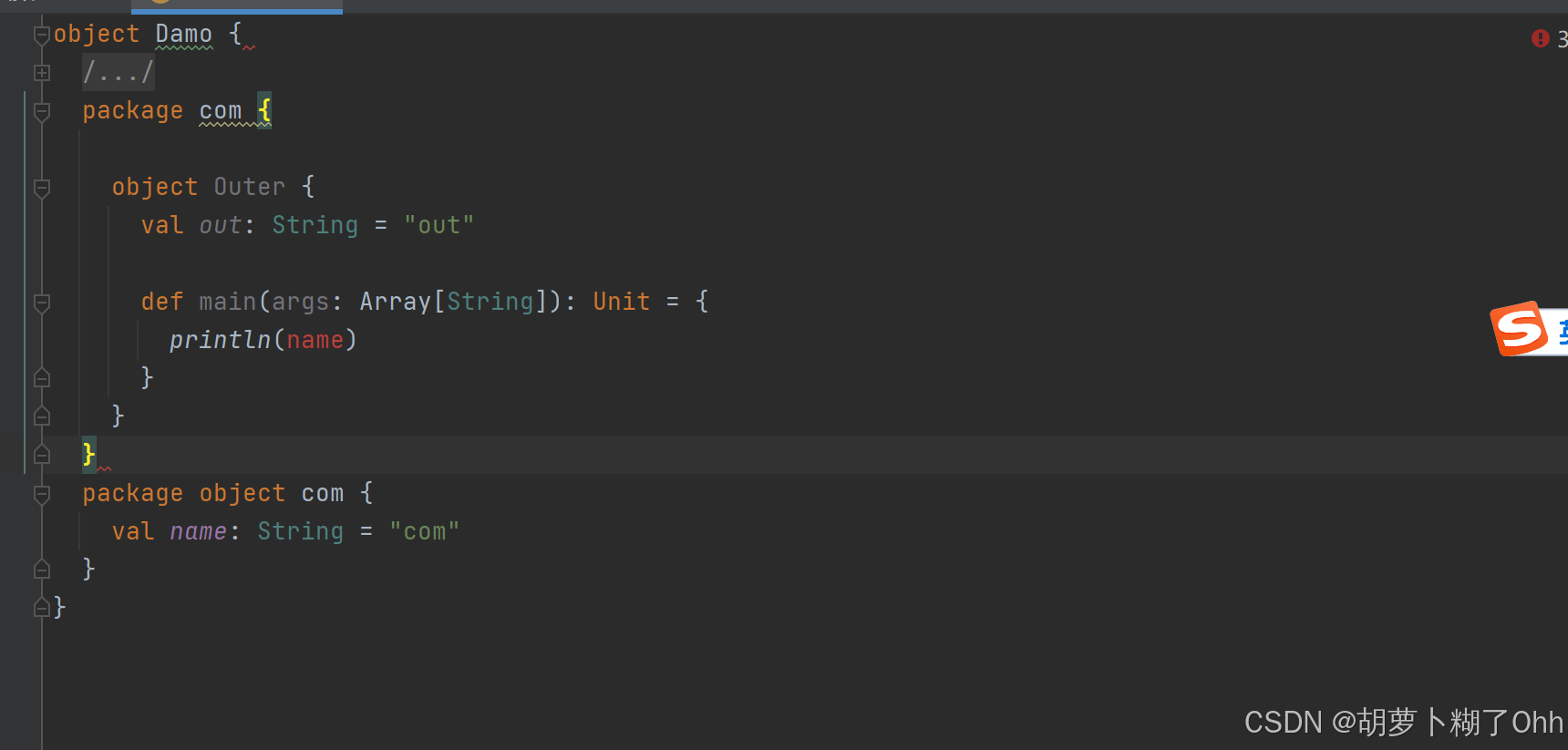 若使用 Java 的包管理风格,则包对象一般定义在其对应包下的 package.scala文件中,包对象名与包名保持一致。