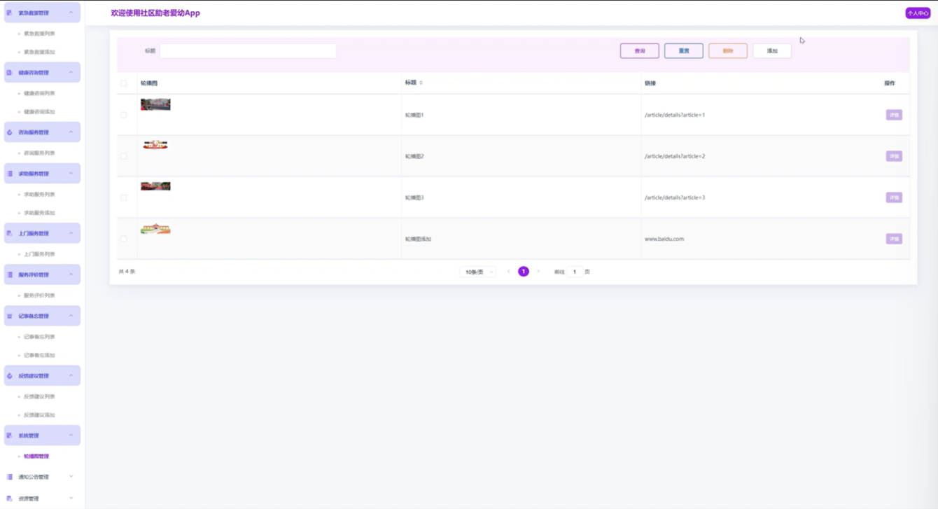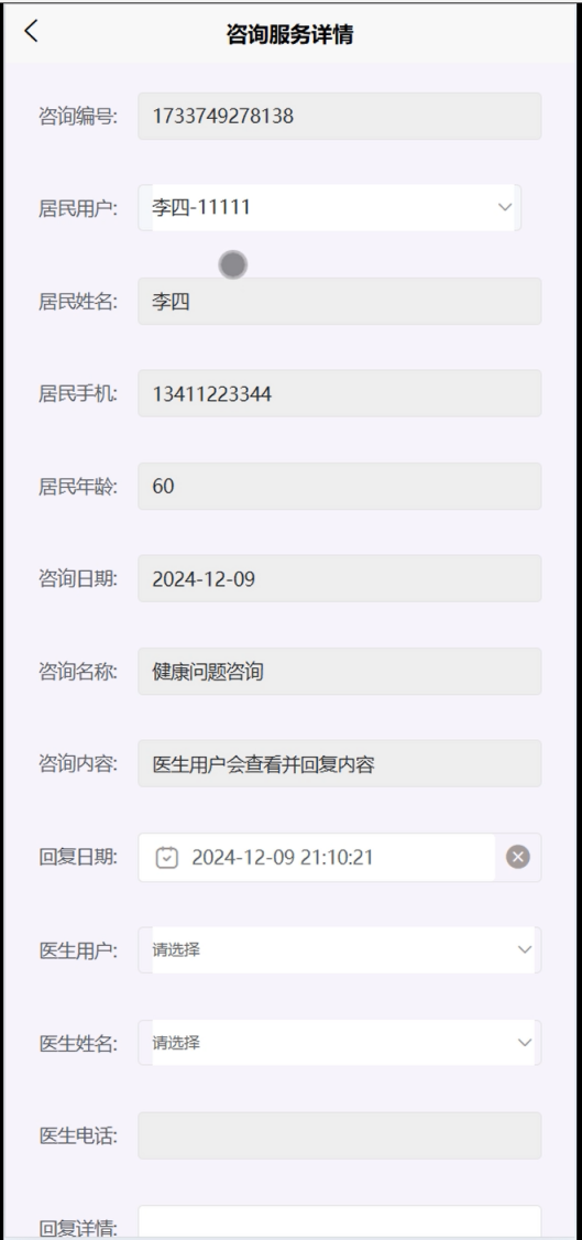 The system design adopts a modular architecture, combined with a front-end and back-end separation development mode, to ensure the scalability and maintainability of the system. Through in-depth analysis of user needs, the system interface is user-friendly, easy to operate, and can effectively meet the needs of different users. At the same time, the implementation of the system also provides strong support for community health management and service improvement.
