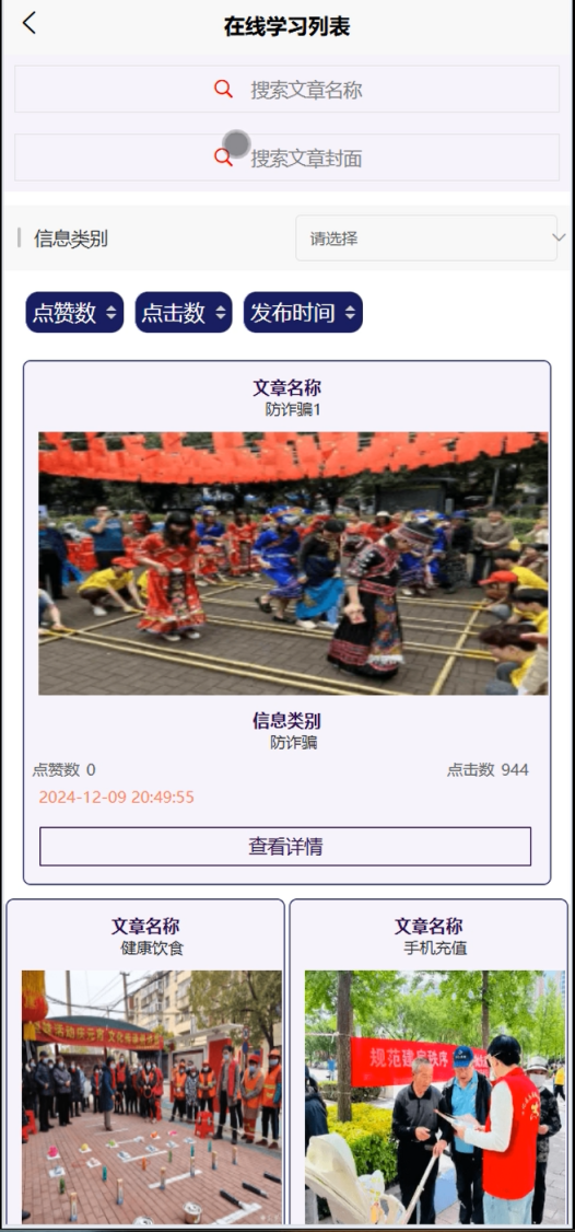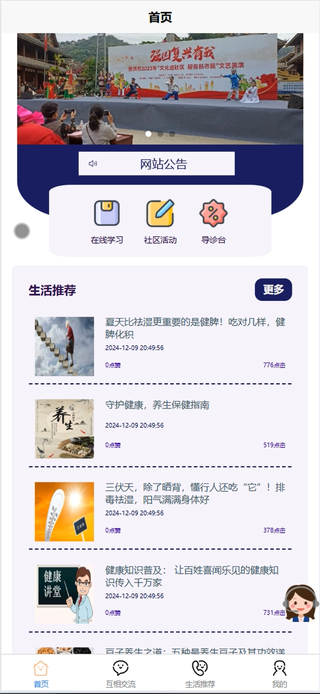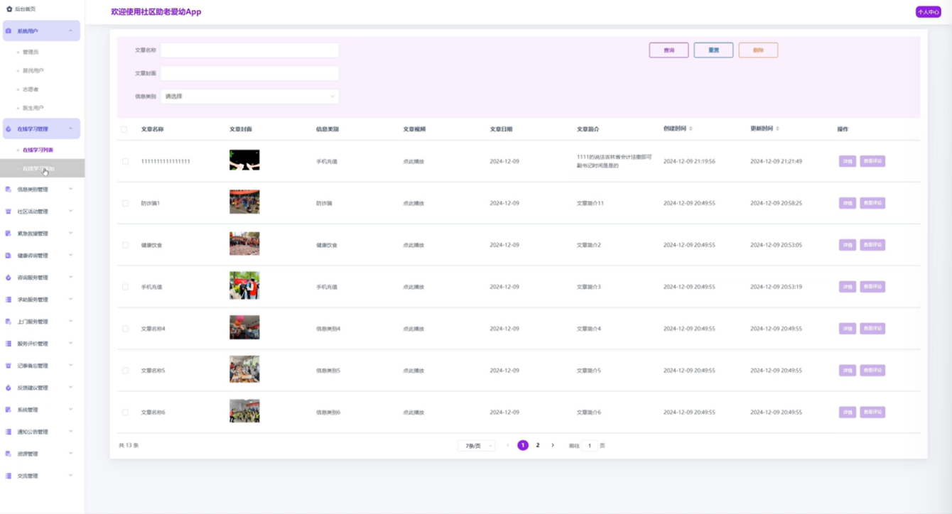 在线学习:提供健康知识、生活技能等在线学习资源,用户可以随时访问课程视频、文章和测试,提高居民的健康素养和生活技能。