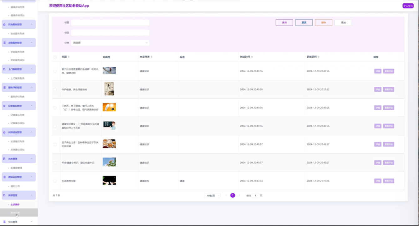 社区助老爱幼App的实现基于Spring Boot框架、Java语言及MySQL数据库,具有良好的扩展性和维护性,能够适应不断变化的社区需求。通过模块化设计,系统能够灵活应对不同用户的需求,确保用户体验的优化。此外,系统还提供了便捷的反馈机制,使得用户能够参与到社区服务的改进中,从而形成良性循环。
