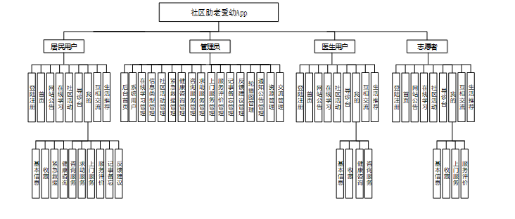 社区助老爱幼App旨在为居民、医生、志愿者和管理员提供一个全面的服务平台,以促进社区的互动与支持。以下是各类用户的功能分析: