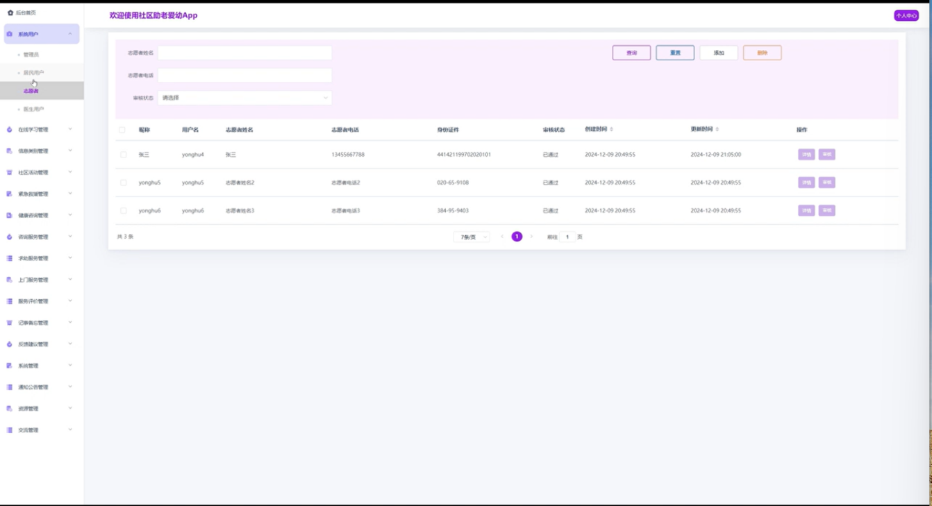 随着社会老龄化和对儿童关爱的重视,社区助老爱幼服务逐渐成为社会发展的重要组成部分。为满足居民、医生、志愿者和管理员之间的互动需求,本文设计并实现了一款基于Spring Boot框架的社区助老爱幼App。该系统采用Java语言开发,后端数据库使用MySQL,旨在通过信息化手段提升社区服务的效率和质量。