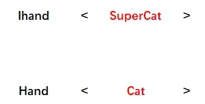 既然实现IHand<Cat>接口的Hand<Cat>的Pet方法可以处理Cat类型,显然其应该也可以处理作为Cat子类的SuperCat。同样的,以类型为IHand<SuperCat>的接口变量hand来看,本来应该需要类型为SuperCat的地方现在实际却是Cat类型:
