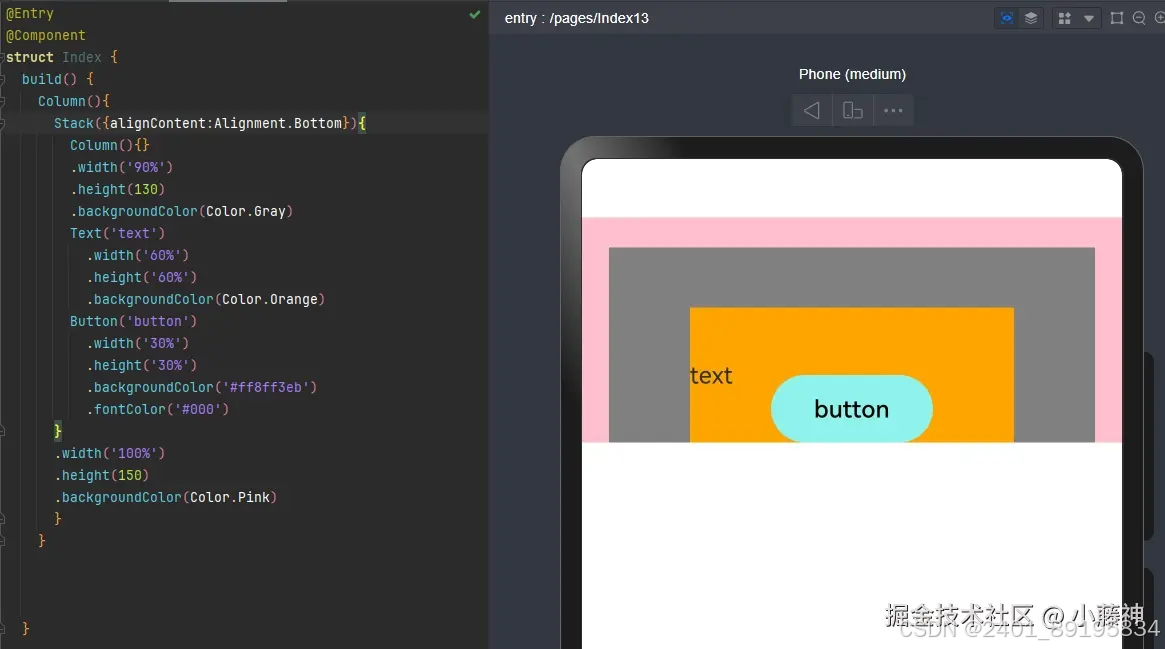 stack里面的元素会自上而下按层级重叠排列,默认排列在stack容器的中心