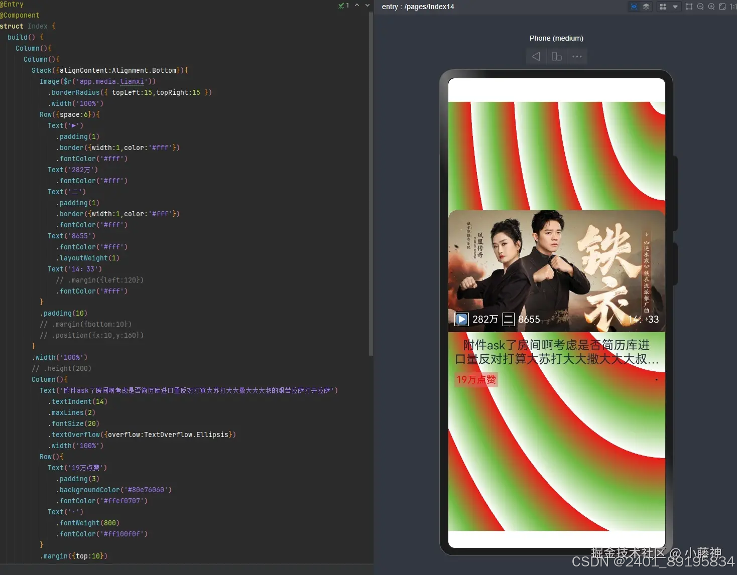 * Stack(){ 可以写任意组件,Row,Column,Flex,Scroll,Image,Text,Button.... }
