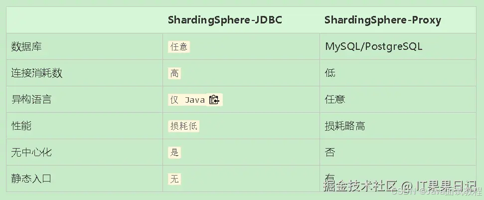 | 特性/方面 | Sharding-Proxy | Sharding-JDBC |