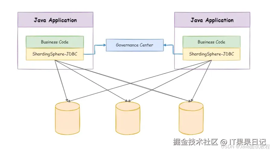 JDBC的解决方案,因此非常轻量,易于集成到现有的Java应用中。 - 灵活性:可以直接在应用程序代码中配置分片规则,允许更细粒度地控制分片行为。