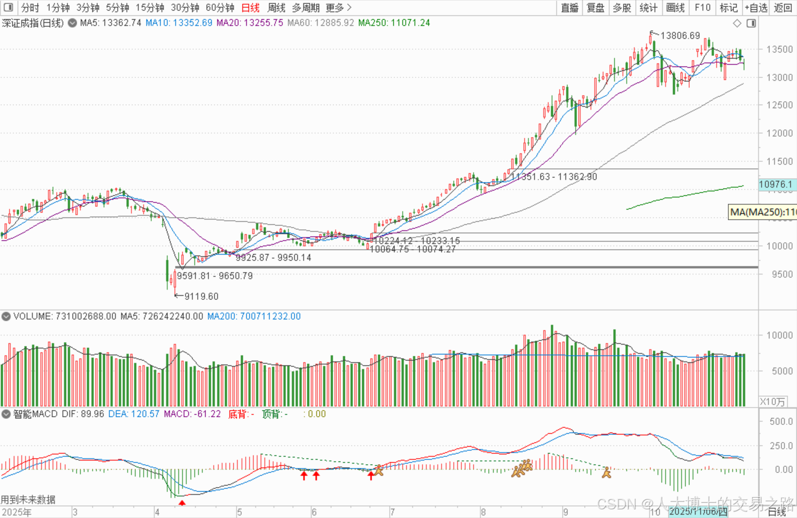 深证指数今天缩量收十字星,午后指数一路回升,收盘价位于5日、10日、20日线下,总体依然是日线横盘震荡为主,相比上证稍弱。个股今天下跌明显多于上涨,赚钱效应较差。