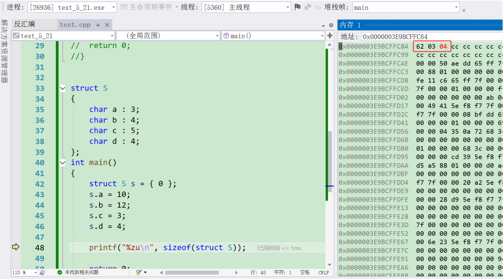 这里我们可以发现,当我们设计成位段类型的时候,所占空间明显变小了,反过来,当我们设计成普通的结构体的时候(打印出来是16),占的空间明显就变大了。