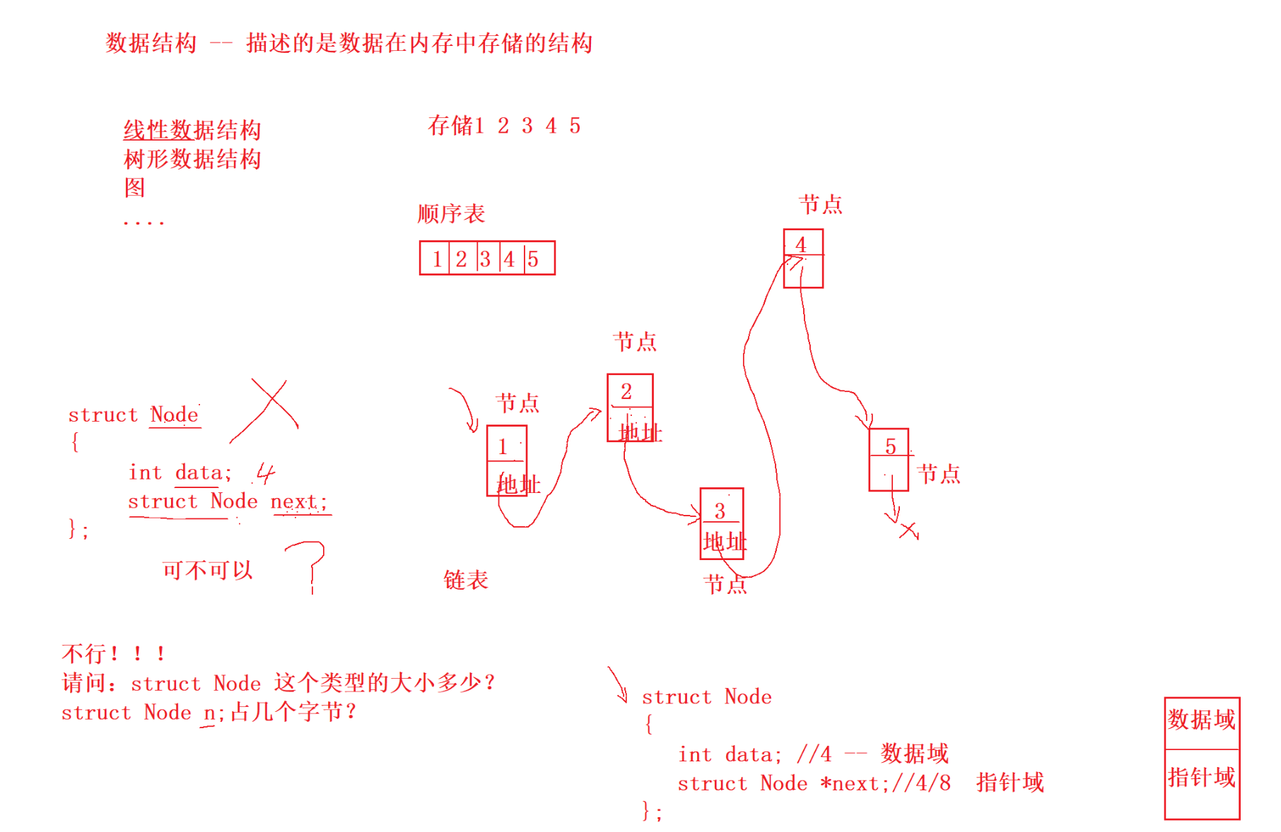 这个代码对吗?仔细想想,是不行的,因为一个结构体再包含一个同类型的结构体变量,这样结构体变量的大小就会无穷大,这是不合理的。