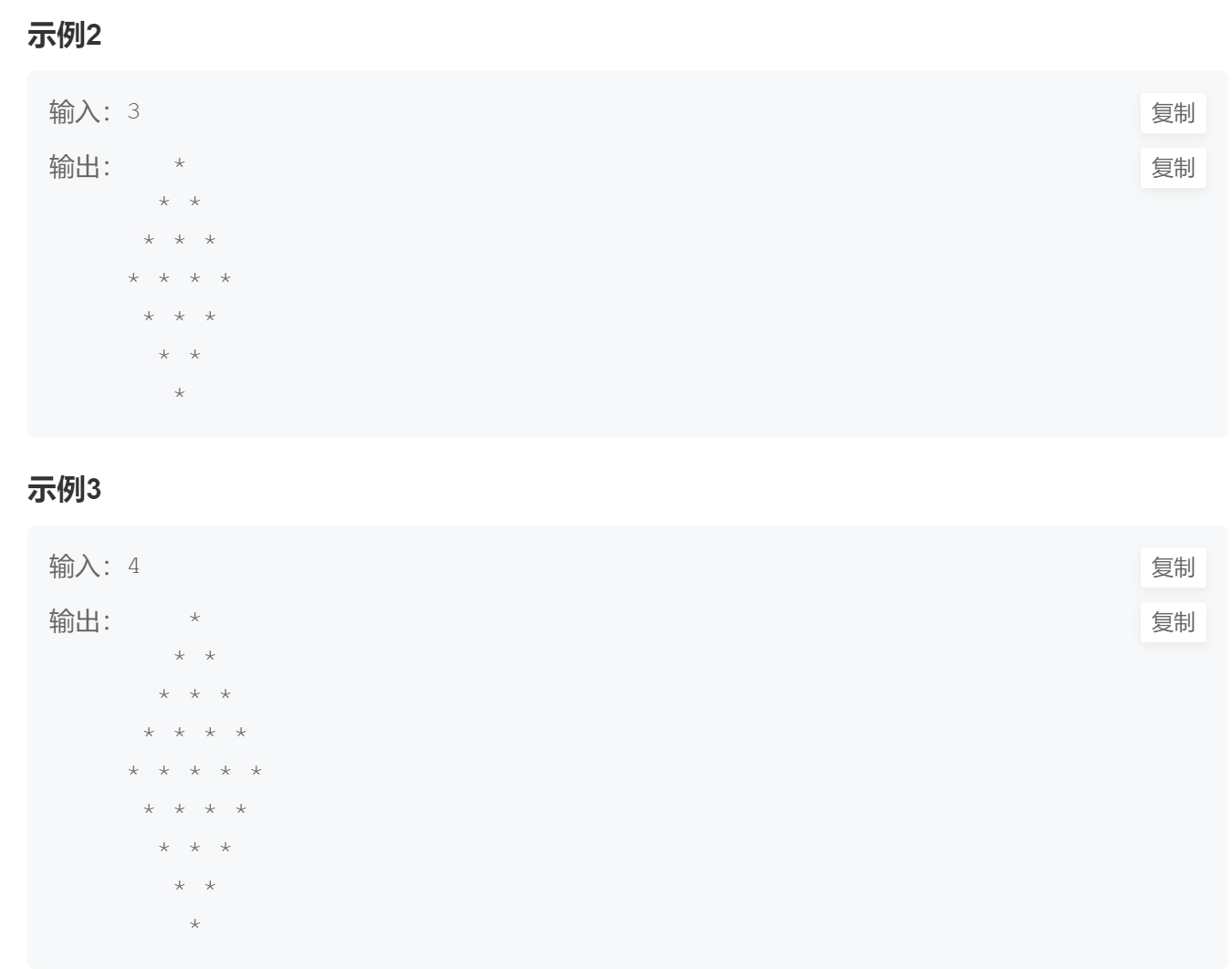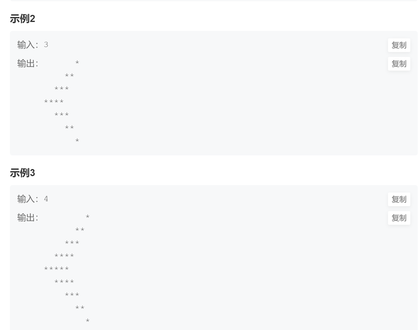 3、 每一行前面是空格,后边是*(前面2个空格为1组)。