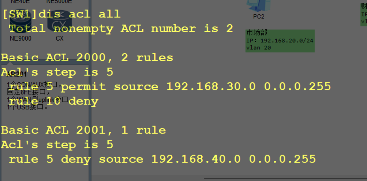 [SW1-acl-basic-2001]rule deny source 192.168.40.0 0.0.0.255