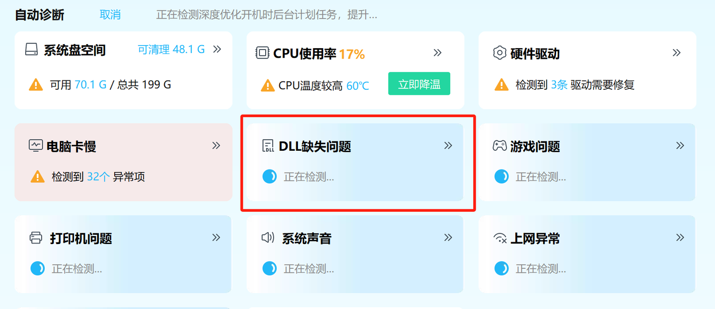 效果:无需手动查找 DLL 文件,快速恢复系统游戏运行环境