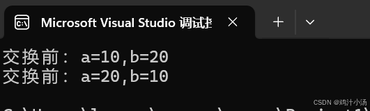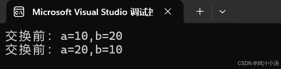 printf("交换前:a=%d,b=%d\n", a, b);