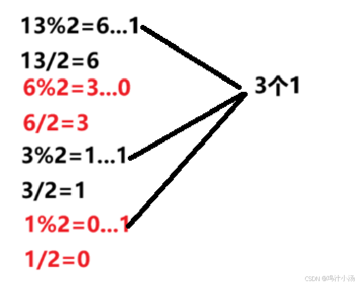 于是我们就想到了用2求余来计算有多少个1