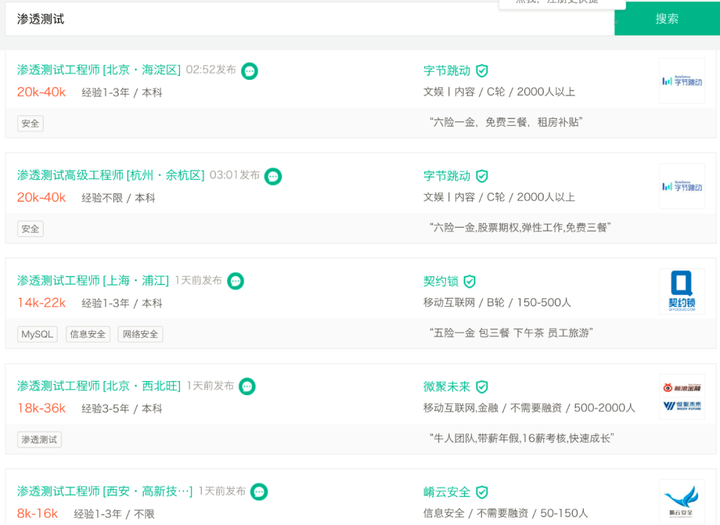 恭喜你,如果学到这里,你基本可以从事一份网络安全相关的工作,比如渗透测试、Web 渗透、安全服务、安全分析等岗位;如果等保模块学的好,还可以从事等保工程师。薪资区间6k-15k