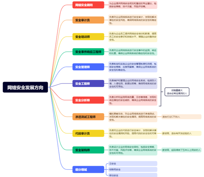 很多人以为网络安全就是 “攻攻防防”,其实不是。这个行业的发展路径特别宽:可以走技术路线,从安全工程师做到渗透测试专家、安全架构师;也可以走管理路线,成为安全团队负责人、CTO;还能往业务方向转,比如做安全咨询、合规审计。不管你是喜欢深耕技术,还是擅长沟通协调,都能找到适合自己的方向。