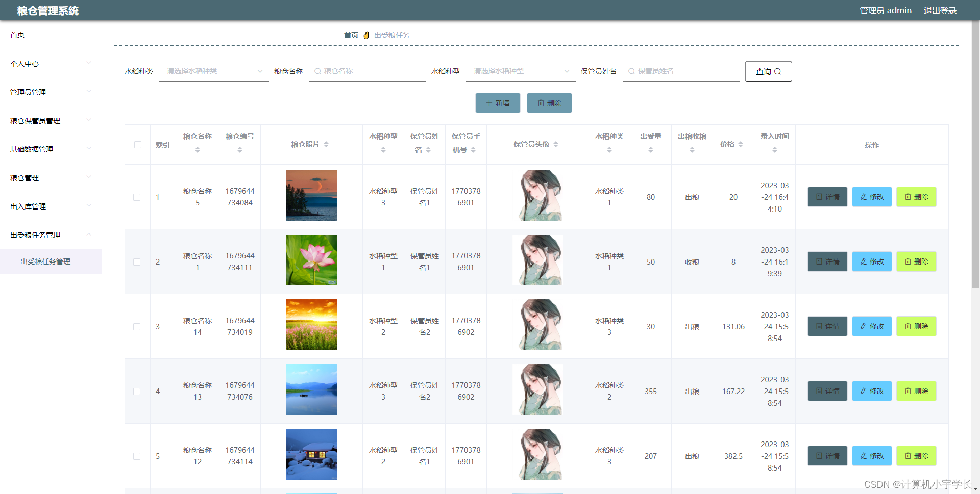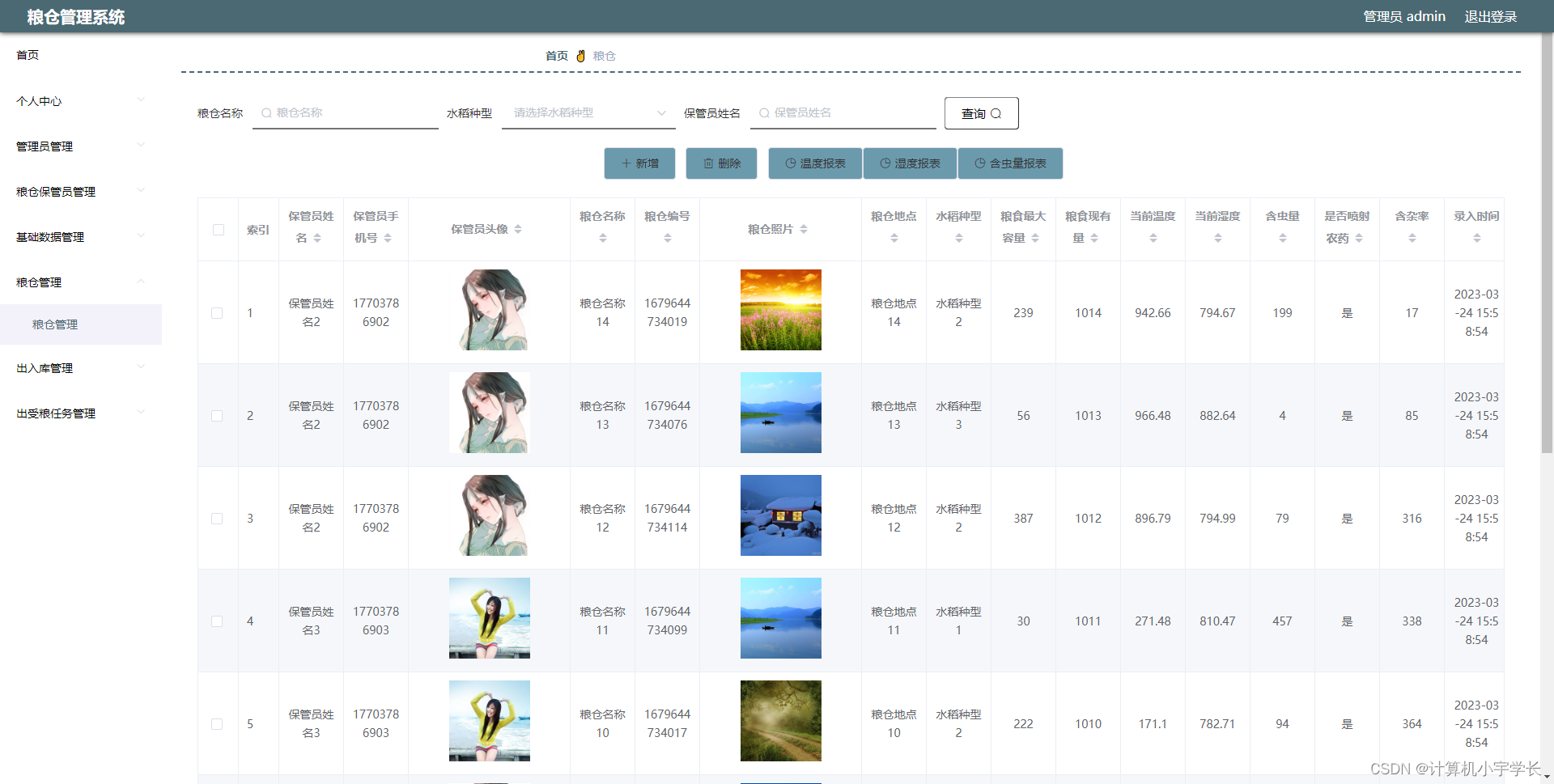 - 粮仓保管员管理:管理粮仓保管员的信息,包括人员信息、职责分配等。